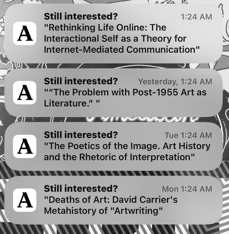 iPhone Screenshot fun. What, Academia, am I still interested in these?—of course I’m still interested. Is there anything else to be interest...